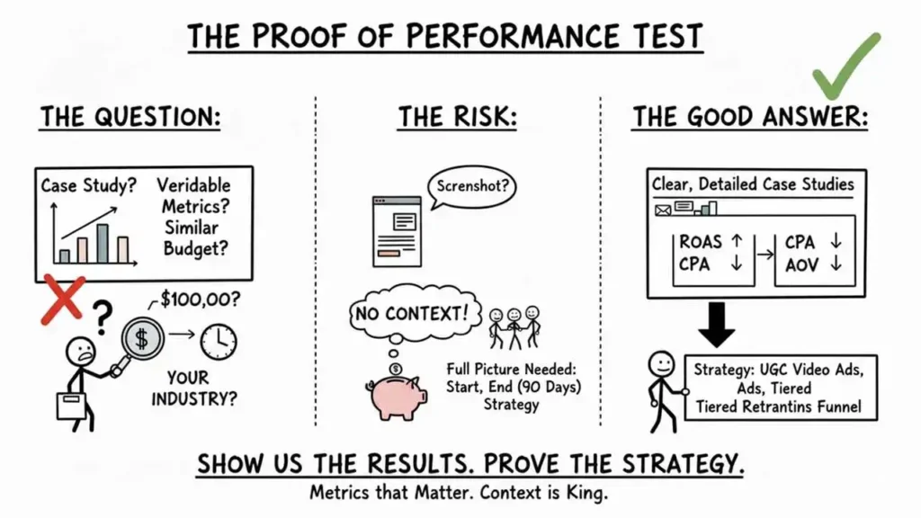 Anyone can grab a screenshot of a high ROAS number. What matters is context. Did they spend $1,000 to get that result, or $100,000? Insist on seeing the full picture: starting budget, end result after 90 days, and the strategy they used to get there.